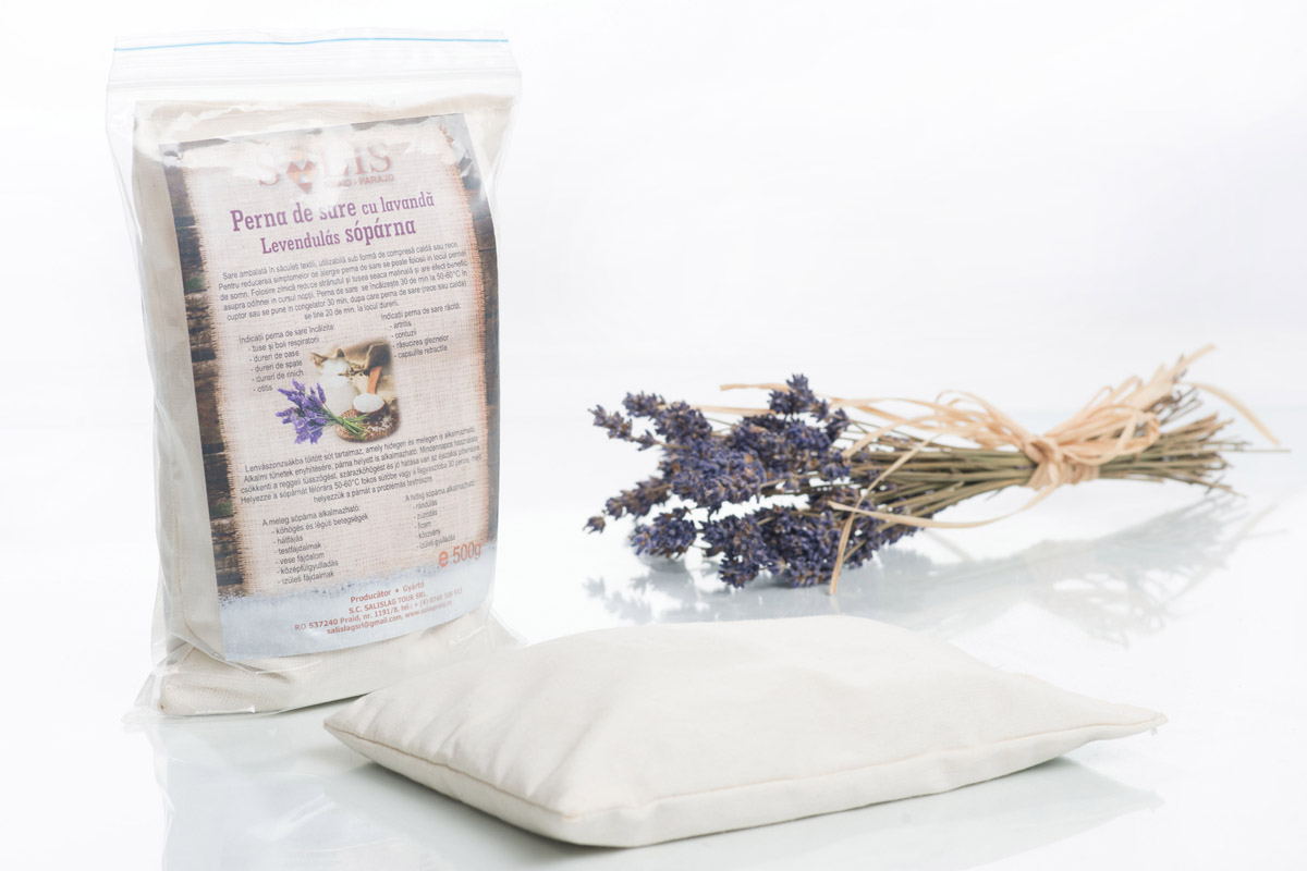 Sare ambalată în săculeţi textili, utilizabilă sub formă de compresă caldă sau rece.